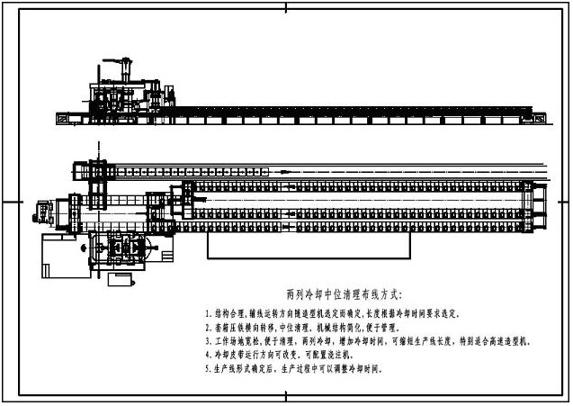 5.1 結(jié)構(gòu)合理,輔線運(yùn)轉(zhuǎn)方向隨造型機(jī)選定而確定,長度根據(jù)冷卻時(shí)間要求選定。