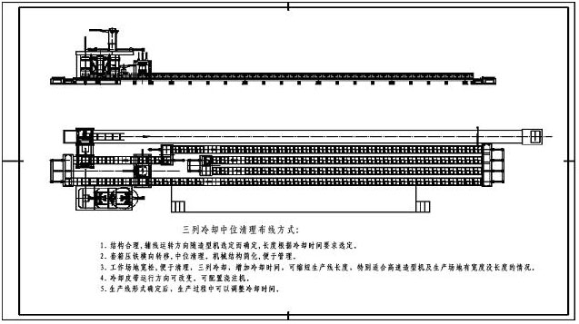3. 雙列澆注單列冷卻中位位清理單列二次冷卻皮帶。